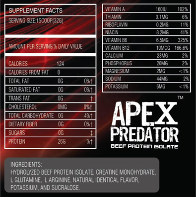 • HIGH ABSORPTION RATIO Berserker’s Apex Predator is a hydrolyzed beef isolate which is sugar, cholesterol, fat and lactose free thus protein digestion and absorption is at its highest.
