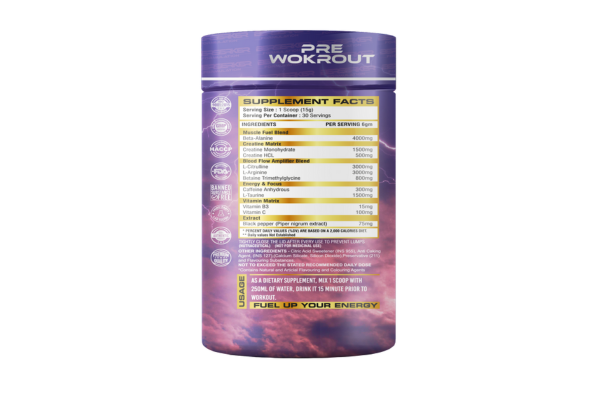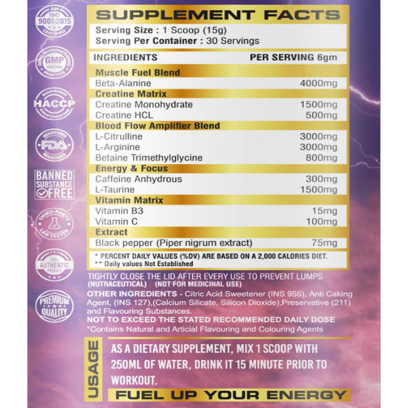 Elevate your workouts with Kraft Pre, a scientifically crafted pre-workout blend designed to boost energy, enhance focus, and maximize endurance. Engineered for athletes and fitness enthusiasts, this advanced formula heightens alertness, improves blood flow, and fuels peak performance.